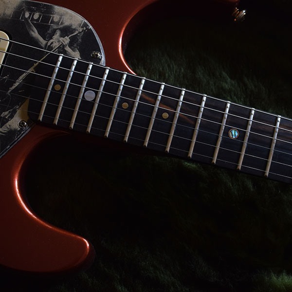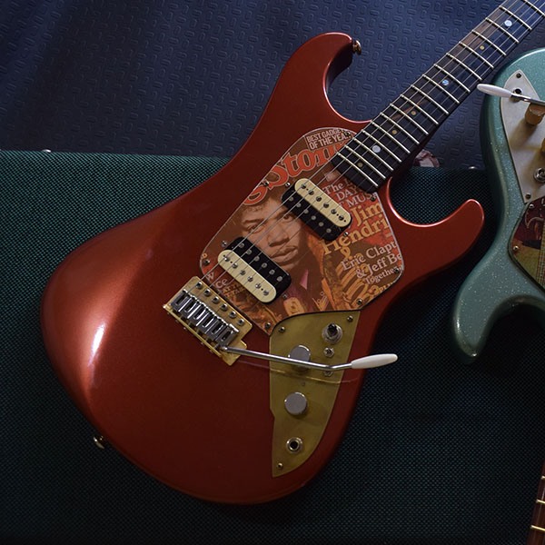 Esta versión de caoba y ebano está inspirada en una strato Schecter de los 70s de aspecto rústico que en un show fue ejecutada y elogiada por los músicos presentes aquella noche. Recuerdo que alguien dijo “Tiene una dinámica increíble”. Decidí usar un ejemplar de caoba sudamericana que había estado durante años junto al horno de una antigua panadería, por lo que su estacionamiento era envidiable. El resultado fue tan positivo que daba para llevarla al punto de su máxima expresión. Hice un cambio de micrófonos y tiempo después se agregaron los mini toggles. Su sonido cálido realmente conmueve.