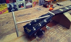 Tema complicado de abordar 1) amo el sistema Gibson (casi siempre se ajusta fácilmente; al de la foto lo calibré literalmente con dos dedos) 2) por supuesto, incomoda hacerlo con una herramienta tan monstruosa como la que ven aquí, hay otra más discreta (que perdí hace unos meses) 3) preferiría una llave Allen como requieren las Fender sistema que suele ser más duro a la hora de operar (aunque algunas MUY amables como la strato de mi amigo GV ...espectacular... que yo recuerde, ninguna jamás ajustó tan suave y efectivamente como su strato blanca) 4) la peor que me tocó fue una Fender strato nueva ya con tensor BIFLEX... al pobre dueño finalmente se la cambiaron, luego de un informe mío y de 1 año de estar tocando con las cuerdas -literalmente- a 5 mm de altura ("yo vengo de la guitarra clásica... nunca me fui a quejar porque pensaba que las eléctricas eran así") 5) tensores de doble acción: instalación muy simple y una ventaja extra: el reverse. Pero tienen un rango de funcionamiento algo limitado. Inobjetables en cuanto al sonido: de las guitarras de mi stock hay dos que expresan un tono asombroso y rompen con los postulados teóricos: ambas con tensor de doble acción y mástil laminado en tres al estilo Gibson de los 70s. 6) por último: el tensor de simple acción de Gibson -mas allá de lo evidente y visible- sepan que internamente se instala distinto al Fender.